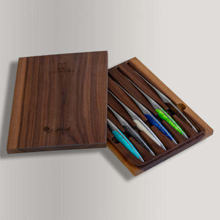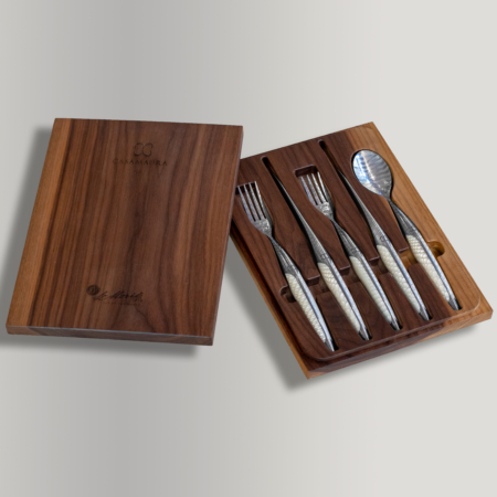 To the candles with 100% anti-soot wicks, veiled by a blend of loden and cotton that is now in extinction. In addition to the spray variation for hands, the home and fabrics. Gifts of well-being, in uncoated paper boxes, the most sought-after in ecological publishing. Otherwise wrapped in tissue paper of rare workmanship, smoothed with a silk-like effect, from one of the most sophisticated small printing-houses. Also cradled like secret jewel boxes, made of fine hand-stitched leather, by master saddlers. Like a nest or a surprise cutlery egg, Design Egg, at the heart of Casa Maura’s poetics. Ode to life, in the sweet memory of those warm, almost golden eggs, collected in a child’s chicken coop and tasted secretly, before being sold by Grandmother. Silvering inspiration beginning from the first layer of brass thanks to an almost primitive workmanship, for a mysterious, mirror-like effect. Finishing with the diamond-shaped engraving, always in harmony with the environment, respecting its stones. The same zen softness is found in the silver jugs. Cylinder-shaped and rounded. To welcome water and its healing miracle. From the hand shaped beak, piece by piece, to the handle, almost like a butterfly in flight. From the talent of a magical welding wand. A game of details: the satin label on each box, the white glove supplied, for maximum care. Like the one for wine, the prince of hospitality. Artwork to be framed, with the Bottle Holder designed by Maura Wasescha. To host the most precious bottles, respecting the ideal inclination for oxygenation, in a hand-signed Limited Edition, using a diamond tip. Moving on to the silk velvet of the seamstresses’ looms, the only ones who still embroider sparks of gold thread produced by a company that dates back to the sixteenth century. Its pochette is dressed from the inside in pure Vichy or in cotton with an antique print of carved wooden matrices and the diaries in hand-sewn Venetian paper with a specially chosen paper grammage. Companions over time, for a relaxing home ménage. Together with the iPad holder made of natural textured leather, with a secret pocket of femininity and flexibility, made of whalebone. With careful research of just the right fibers balanced between innovation and design, for the ideal haute couture of the home.